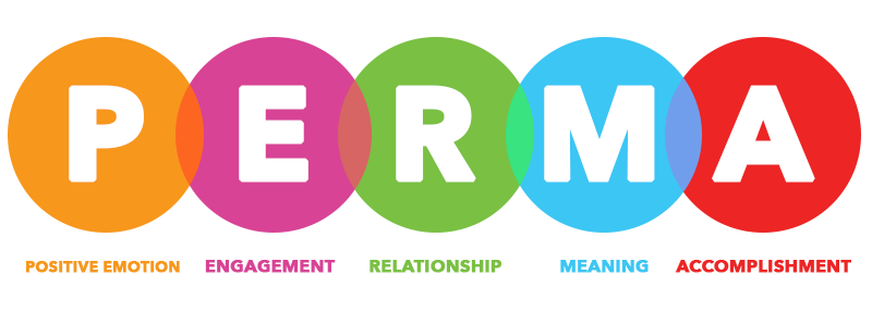 - Afbeelding gekopieerd van: Brewerton, P. (2021, 18 oktober). S11E9 What is the PERMA model of positive psychology? In Strengthscope: Podcasts. https://www.strengthscope.com/podcasts/what-is-the-perma-model-of-positive-psychology