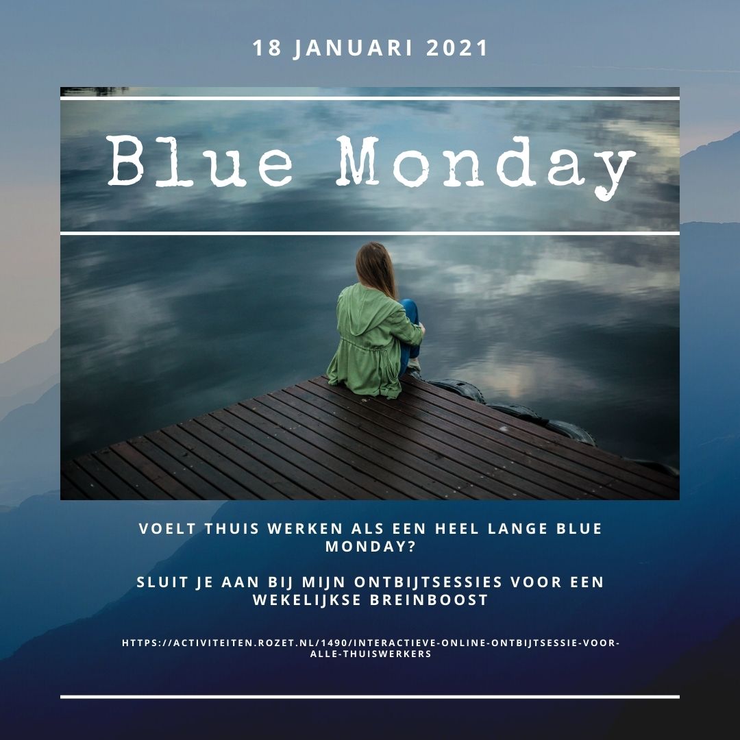 Voor wie momenteel veel thuis werkt en januari ervaart als één lange Blue Month, bied ik wekelijkse ontbijtsessies aan. Even een half uurtje samen de week opstarten op maandagochtend. Verhalen uitwisselen en een beetje inspirerende breinkennis opdoen. Vanochtend stond de sessie natuurlijk in het teken van Blue Monday, volgende week is er weer een nieuw onderwerp. Meld je snel aan via deze link, er komen er nog zes (je betaalt alleen voor de keren dat je er was).